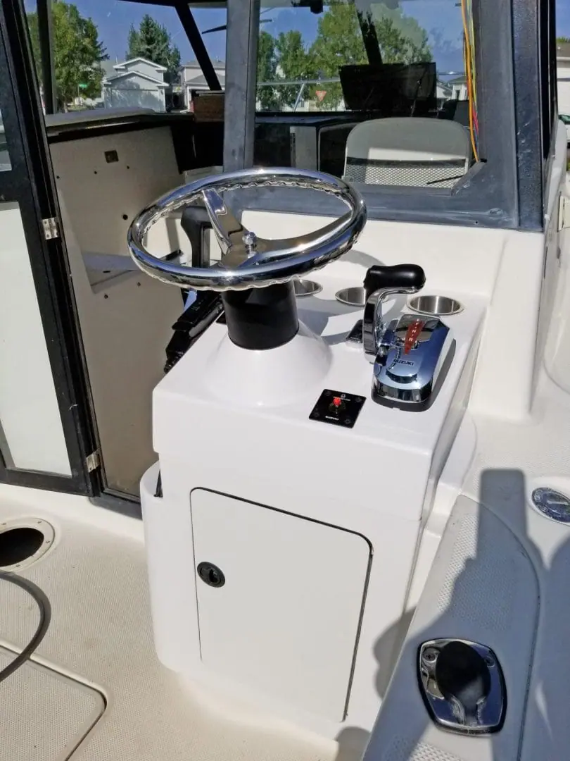 From past fishing experiences, I’ve learned that quick changes in speed and direction are often required when retrieving a hooked fish. Having a control station on the fishing deck of our Trophy 2359 would make for a more enjoyable fishing experience. Since we’ve been underutilizing our bait well, we chose to sacrifice it and built a new rear station in its place.