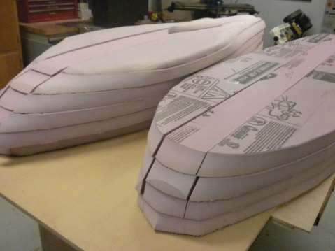 A stable platform is created from MDF or other similar material and provides a flat surface for the first foam sheet to rest on. This is vital to prevent the mold from warping or curling. Once a few layers are attached together, movement is minimal due to the rigidity of the foam sheets.