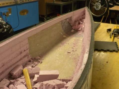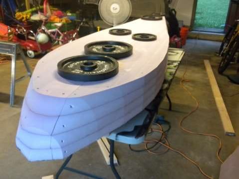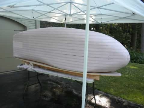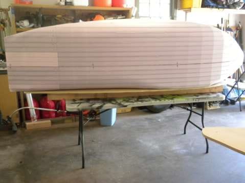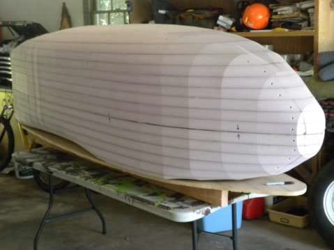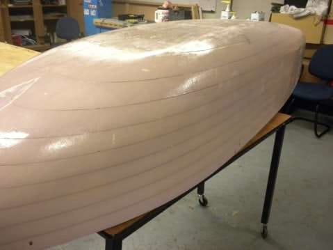 The mold sections have been screwed together and are ready to be faired. Take care not to dig into the mold when moving it (fingernails and tools) or take too much material off while sanding. Errors can be fixed at a later stage, but will just mean more time spent working on it.