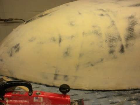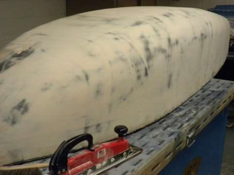 I was an automotive paint and body man in a past life and those skills are relevant at this stage. Your final finish will depend on a number of steps in this process and a lot of sanding. This is not hard work, but it requires patience. Pick up a longboard sander from an auto body and paint, and 100 grit sandpaper. The longboard helps keep the mold plug straight and true while you remove machining marks and raised areas on the foam.
