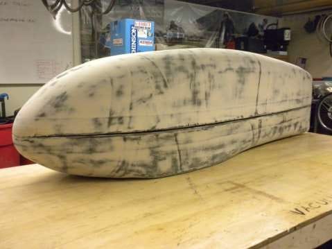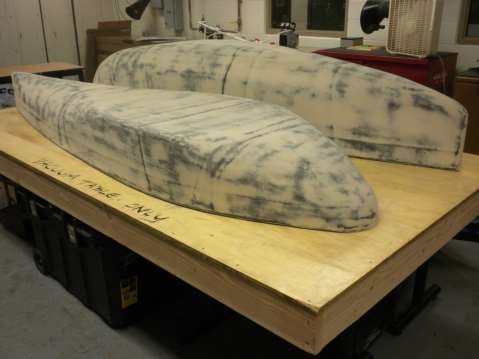 Once the plug is faired, the upper and lower sections can be separated and waxed in preparation for applying Kevlar and carbon fiber cloth.