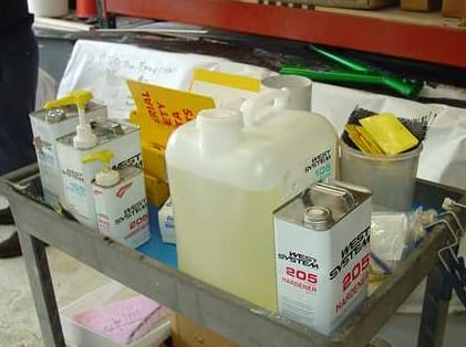 One thing that will enhance your experience is a mobile epoxy cart that contains all of the epoxy supplies to create your shell. This will save you much time searching for supplies and allow you to bring the epoxy to the project versus the project to the epoxy. The cart need not be fancy but must provide a stable platform that will not flip over when in motion. You can build a custom cart or re-purpose an existing one.