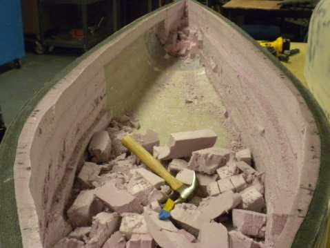 I used to build molds by gluing together each horizontal section to prevent movement and misalignment. This was a messy process that made it difficult to remove the solid mass of foam from the shell. I switched to 3″ deck screws to join each layer of foam together. They go in quickly and hold really well. This is a rapid process and allows a layer to be easily removed if there is an alignment issue or machining error. It also speeds up the removal process which will be discussed in a later section.