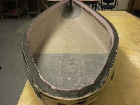 A male mold plug was used to create Big Nose Pete’s shell with Owens Corning FOAMULAR insulation board that was 2″ thick and 8′ long by 2′ wide. Thirty sheets of foam were CNC machined on a 4’x 8′ router and then stacked and joined with 3″ exterior grade deck screws. The widest section of the mold was greater than 24 inches so each layer was made from more than one foam section when required. The foam plug assembly was block sanded by hand to create the desired final look and shape. The plug was covered with one layer of Kevlar cloth and two layers of carbon fiber cloth to provide a durable and strong shell in the event of a rollover. WEST SYSTEM® Epoxy was used to bond all composite materials at room temperature. The exterior of the shell was faired with WEST SYSTEM® Epoxy blended with WEST SYSTEM® 410 Microlight fairing compound to achieve a uniform smooth finish.