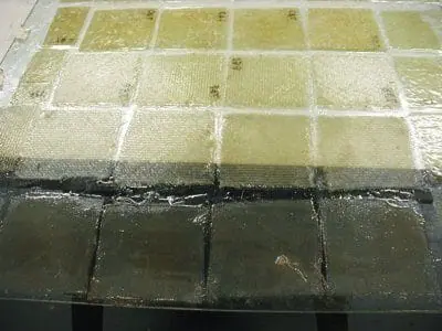 Above: Wet-out chopped strand mat and woven fabric test samples are prepared for moisture uptake testing.