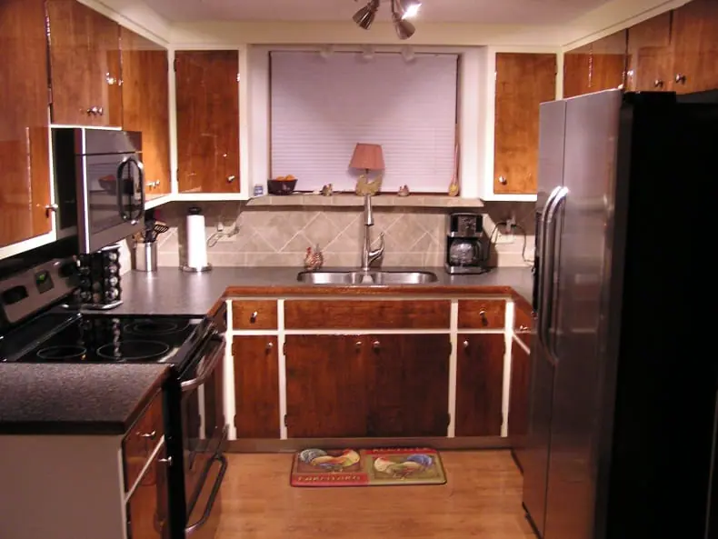 After finishing the new tile backsplash and textured Formica countertop with the smooth gloss finished epoxy coated doors, I can say my wife is pretty happy with my latest project.