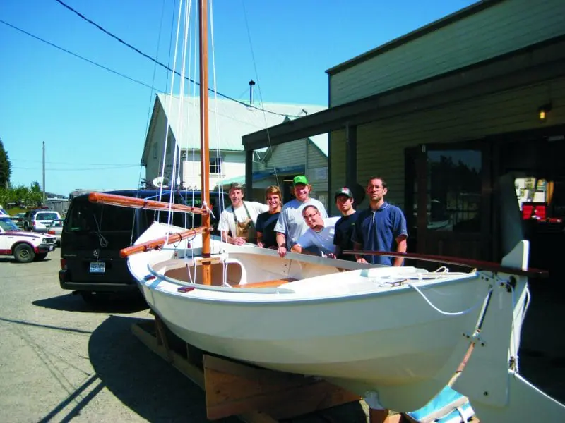 Above: Students of the Northwest School of Wooden Boat Building and the recently built Caledonia Yawl.