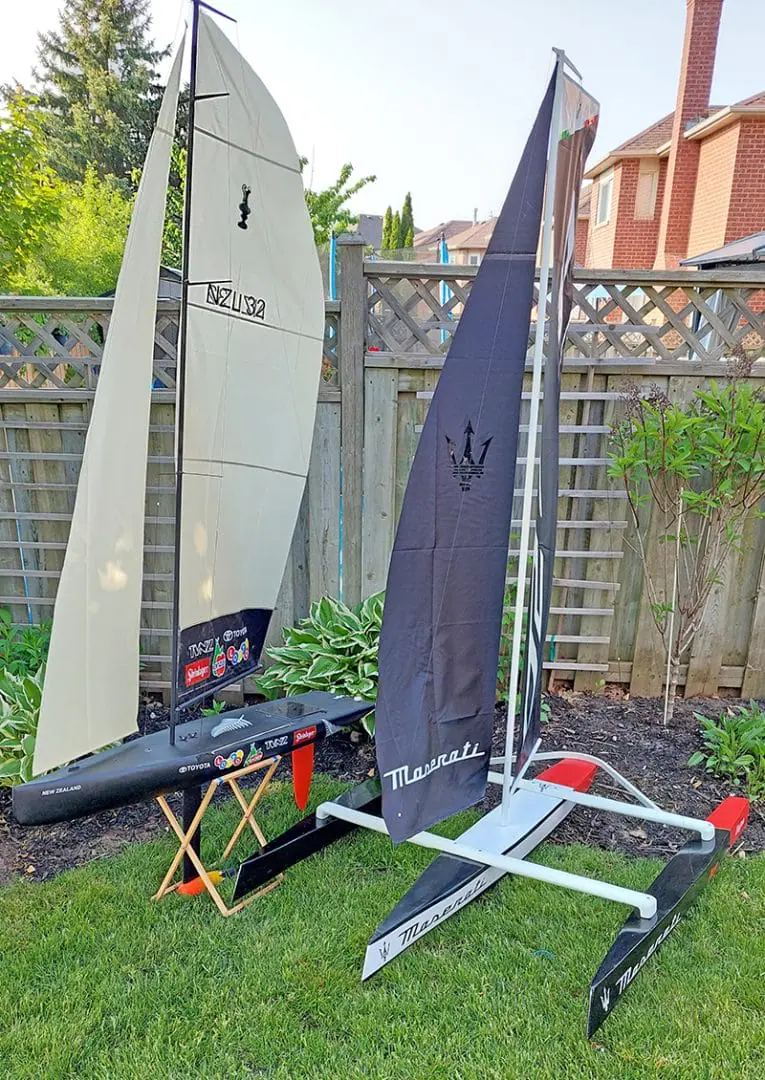 My second boat is a scale reproduction of the Multi70 trimaran, Maserati. The model is 53″ (135 cm) long, 37″ (94 cm) wide, 96″ (244 cm) high, and only has 3 lbs (1.4 kg) of lead.