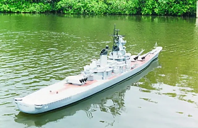 This battleship replica was built by Rob Neill of Naples, Florida. He began building models after retiring from his job at the local power company. He spent two years building the 15′ radio-controlled replica of the Iowa class Battleship, New Jersey, using wood, WEST SYSTEM epoxy and brass. Starting from scratch, he completed a set of plans by scaling photographs and drawings from library books, then lofted a mold from the plans.