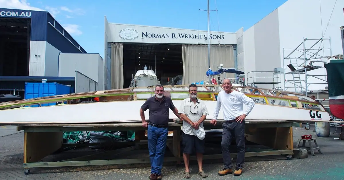 Not that Ian has been idle since then. Norman R. Wright & Sons has a proud 110-year history of boat building—commercial, recreational, and custom. Renowned for their timber vessels, their craftspeople moved into and mastered fiberglass and more recently, carbon fiber. “In the eighties, we pioneered several techniques of wrapping timber in layers of different types of glass or carbon fiber,” Ian said. He explained that the advantages are reduced maintenance, greater strength, lighter weight, and imperviousness to water.