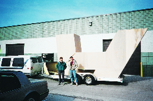 Composite Concept’s first step was scaling out the SAE logo to the proper size on graph paper. Using the drawing, we generated a material list with minimal scrap. We laid out each letter on the top of two layers of 1/4″ lauan plywood placed edge-to-edge on the floor. The front face of each letter was drawn on the top layer. We clamped the two layers together to cut the front and back of each letter at the same time. Then we spliced the sections of plywood together using 6″ strips of 1/4″ lauan, WEST SYSTEM epoxy and staples. To give the letters depth, we epoxied and screwed 2″ x 2″ x 4′ frames between the back and front of the letters. Then we skinned the sides of the letter with1/8″ lauan plywood.