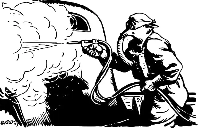 If you are determined to spray epoxy, hazard control steps are crucial. Control of hazardous vapor or spray mist is best achieved with isolation and enclosure, such as a properly designed, ventilated and filtered spray booth. In any case, if you are spraying epoxy, use of an air-supplied respirator and full-body protective equipment is absolutely a must.
