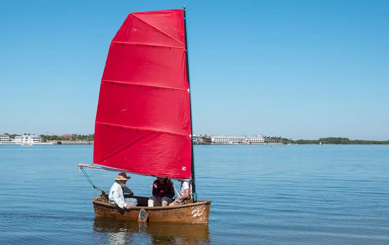 “Like a big Optimist Dinghy,” I’d written, “but, for one or two large adults. Easy rig, and leeboards for Cedar Keys’ shallows.”