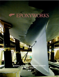 We first looked at Scheherazade in EPOXYWORKS 17, Spring 2001, before she was rolled and set on her 153,000 lb ballast keel. On a March 2002 visit, Scheherazade was resting on her massive keel (cover), while far above, surrounded by multiple levels of staging, work continued on her interior and deck.