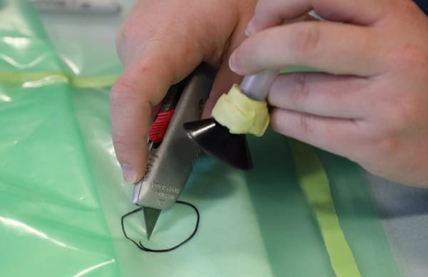 When laying down the bag on your laminate, you will also have to take into consideration where to position your vacuum port on the bag. The hole for the vacuum port should be small and easy to seal well so no air will leak into the assembly.