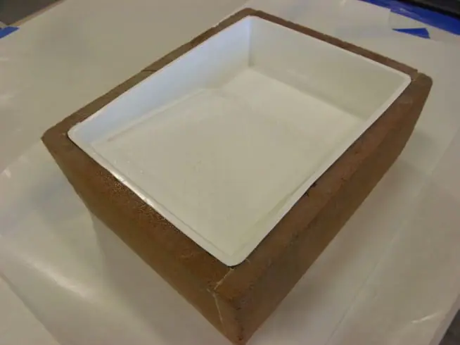 To slow epoxy’s reaction in very warm temperatures, create a foam box that is glued together and sealed to hold your roller pan as shown in the picture. Fill the inside of the foam box with tap water that will act as a heat sink and increase epoxy’s working time. An ice cube or two can be added as long as you do not chill the epoxy too much. Chilling the epoxy too much can cause moisture in the air to condense on the epoxy. The moisture can cause the epoxy to cure at a faster rate, become cloudy and reduce its cured physical properties.