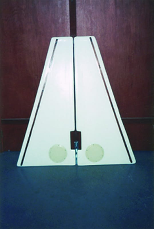 The repairs I’ve described so far make use of the standard techniques, or variations thereof, discussed in previous issues of Epoxyworks or found in our manuals. But the bow floor boards, which we built in the shop over the winter and spring, are unique. The bow of a Pearson flyer seems to get wet more than any other area. It is not a V-berth. Rather, it has sail bins and a portable head, so sails are often dumped wet through the forward hatch. The mast is also stepped there and is notorious for leaking around the mast collar. Consequently, plywood used for floor boards has a short life span. Plywood also gets heavy when it is water logged. For all these reasons I decided to try something a bit different.