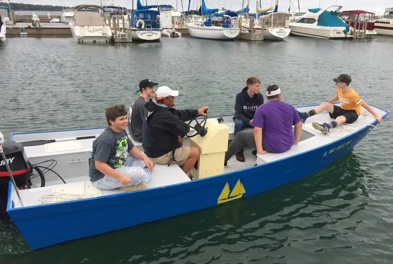 Building the boat was a powerful lesson for the youth involved. They followed a plan that converted a pile of plywood and strange-looking parts into a well-built, functioning boat. They witnessed and participated in countless decision-making discussions, all very calm and focused on the outcome. They learned how to work together in tight quarters. They became proficient in the use of several hand and power tools. They saw the benefits of cooperative effort and synergy.